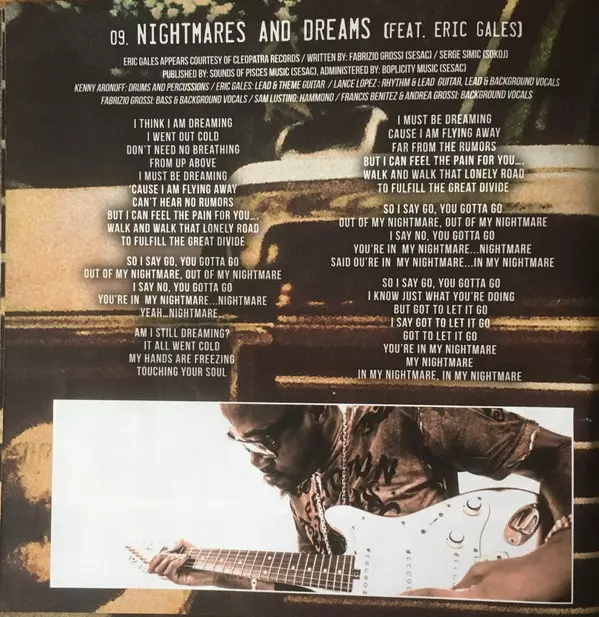 Backing Vocals [Background Vocals] Andrea Grossi (2), Francis Benitez | Bass, Backing Vocals [Background Vocals] Fabrizio Grossi | Drums, Percussion [Percussions] Kenny Aronoff | Electric Organ [Hammond] Sam Lustig | Featuring [Feat.] Eric Gales | Lead Guitar, Guitar [Theme Guitar] Eric Gales | Rhythm Guitar, Lead Guitar, Lead Vocals, Backing Vocals [Background Vocals] Lance Lopez | Written-By Fabrizio Grossi, Srđan Simić - Kamba