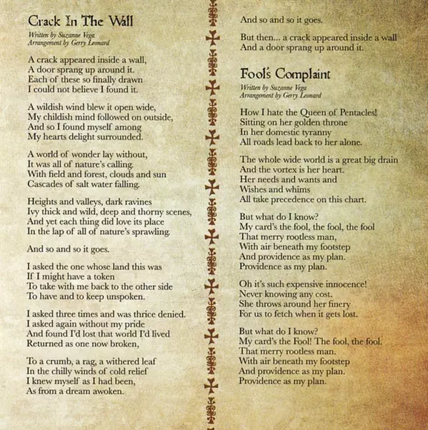Bass Tony Levin | Drums, Percussion Jay Bellerose | Music By Suzanne Vega | Music By, Electric Guitar, Recorded By Gerry Leonard | Recorded By Kevin Killen, Michael Harris (10)
