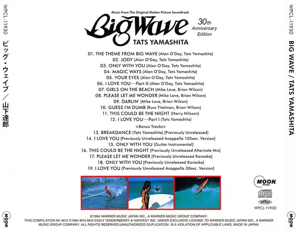 Tatsuro Yamashita: Big Wave (30th Anniversary Edition) versione su CD in rimasterizzati edizione. Questa particolare edizione è stata pubblicata in Giappone nella casa editrice Moon Records (5) in data 30. luglio 2014. Album comprende generi Rock, Pop, Palcoscenico e schermo, Funk / Soul, Pop Rock, Soundtrack, Soul, Funk, Surf e City Pop.
