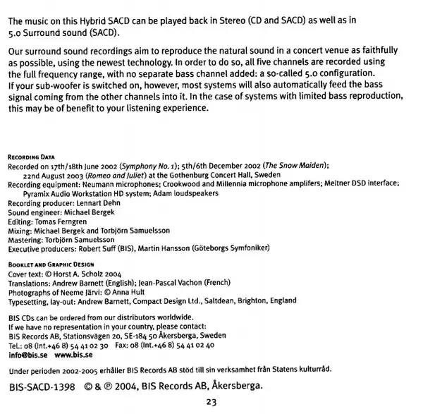 | Per saperne di più | SACD Jewelcase BIS |