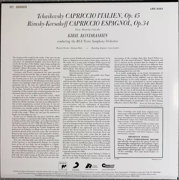 | Artista | Pyotr Ilyich Tchaikovsky | Nikolai Rimsky-Korsakov | Kiril Kondrashin | RCA Victor Symphony Orchestra |