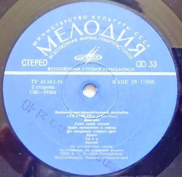 | Per saperne di più | Melodiya Blue-Label USSR pressing |