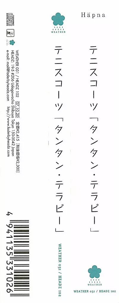 Tenniscoats: Tan-Tan Therapy versione su CD in standard edizione. Questa particolare edizione è stata pubblicata in Giappone nella casa editrice Weather in collaborazione con Headz in data 7. ottobre 2022. Album comprende generi Rock, Folk, World, & Country, Musica acustica e Folk.