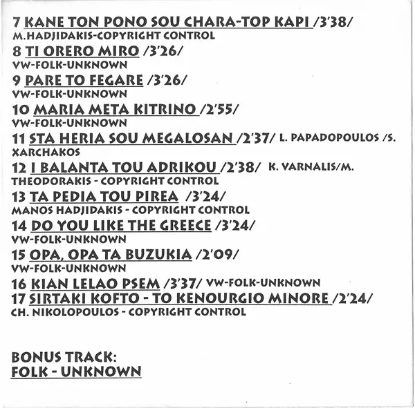 | Titolo | Sirtaki (Folk Memories From Greece) |