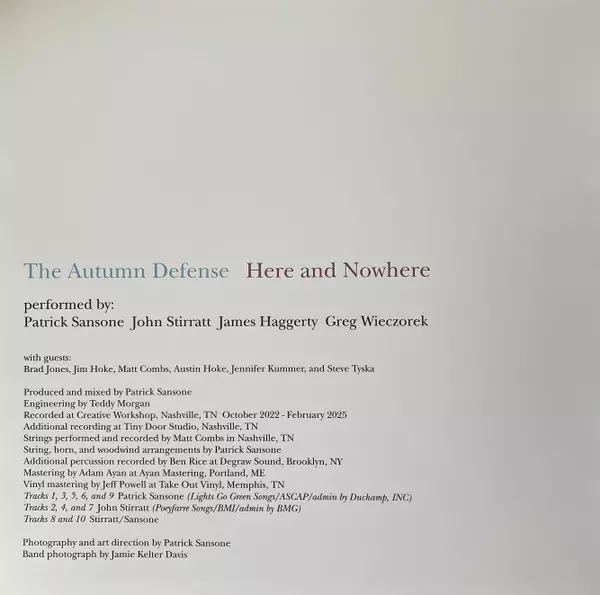 The Autumn Defense: Here And Nowhere versione su vinile LP in standard edizione. Questa particolare edizione è stata pubblicata in In tutto il mondo nella casa editrice Yep Roc Records in data 10. ottobre 2025. Album comprende generi Rock, Pop, Alternative rock, Indie Rock, Pop Rock e Indie-Pop.