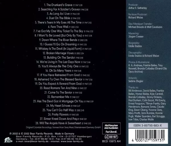 Bass Tillman Franks | Fiddle, Lead Vocals, Tenor Vocals Homer Bailes | Guitar, Lead Vocals, Tenor Vocals Johnnie Bailes | Mandolin Clyde Baum | Producer Art Satherley | Steel Guitar Harold B. "Shot" Jackson | Written-By Scott Wiseman
