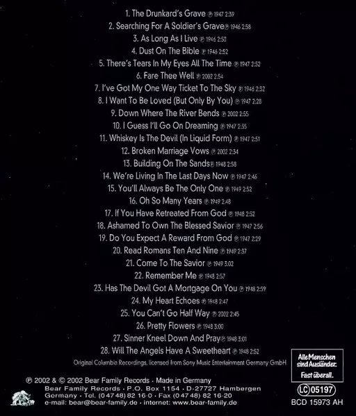 Bass Tillman Franks | Fiddle, Lead Vocals, Tenor Vocals Homer Bailes | Guitar, Lead Vocals, Tenor Vocals Johnnie Bailes | Mandolin Clyde Baum | Producer Art Satherley | Steel Guitar Harold B. "Shot" Jackson | Written-By Bill Bolick, Earl Bolick, Thomas D. Lynn