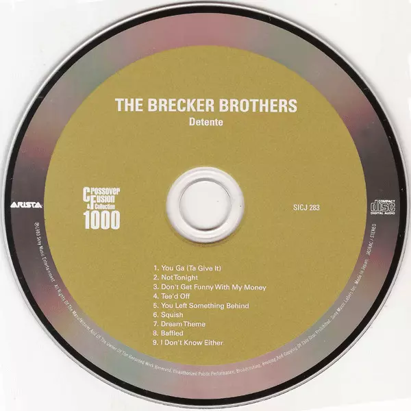 The Brecker Brothers: Detente LTD versione su CD in limitati rimasterizzati edizione. Questa particolare edizione è stata pubblicata in Giappone nella casa editrice Arista in data 8. dicembre 2017. Album comprende generi Jazz, Funk / Soul, Jazz-Rock, Funk e Jazz-Funk.