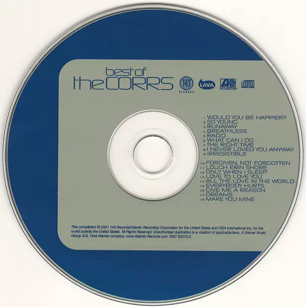 Album "Best Of The Corrs", původně vydané v roce 2001, je dvojnásobně platinovou kolekcí hitů, která obsahuje první tři velmi úspěšná studiová alba skupiny Corrs Forgiven Not Forgotten, Talk On Corners a In Blue.