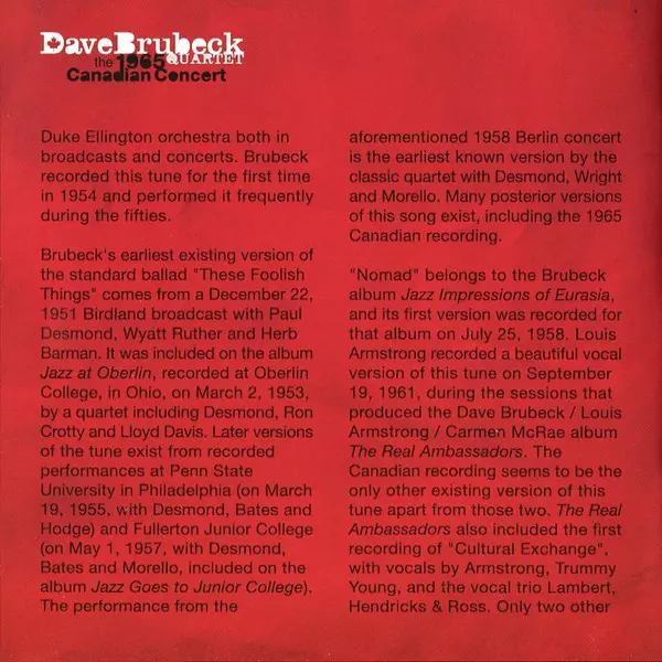 | Artista | The Dave Brubeck Quartet | Paul Desmond |