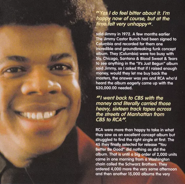 The Jimmy Castor Bunch: It's Just Begun & Phase Two versione su CD in standard edizione. Questa particolare edizione è stata pubblicata in Europa nella casa editrice Robinsongs in data 27. maggio 2014. Album comprende generi Funk / Soul, Musica latina e Funk.