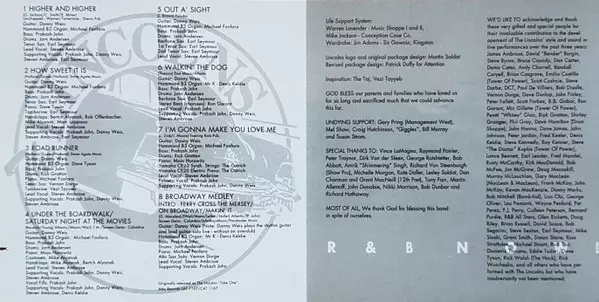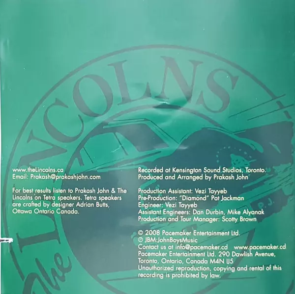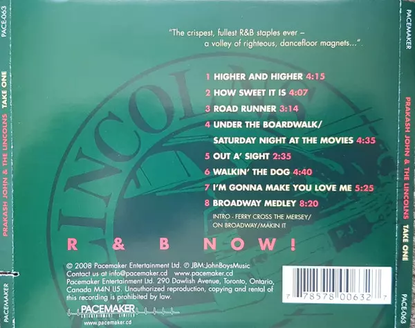 The Lincolns: Take One versione su CD in standard edizione. Questa particolare edizione è stata pubblicata in Canada nella casa editrice Pacemaker Entertainment Limited in data 27. maggio 2008. Album comprende generi Blues, Jazz e Rhythm & Blues.