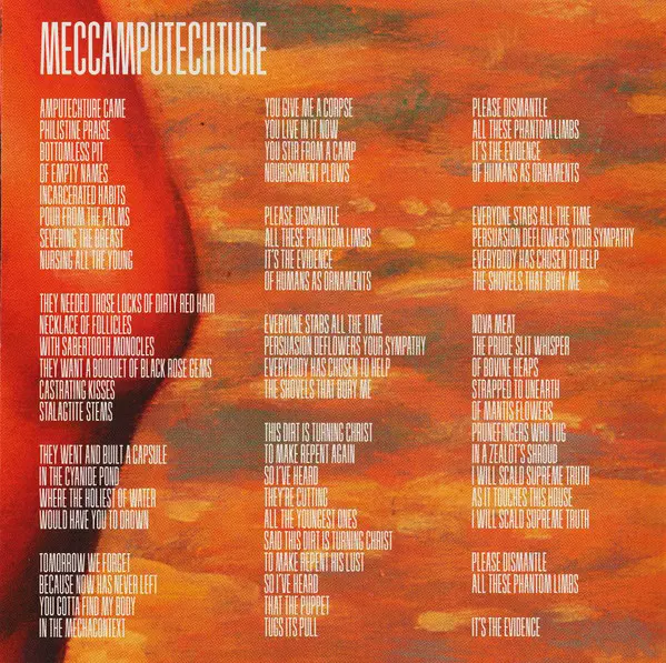 A year and a half after The Mars Volta released the concept album Frances the Mute , they come with a new album Amputechture with eight tracks spanning nearly eighty minutes. The album was produced by Omar Rodriguez and mixed by Rich Costey (Muse,Franz Ferdinand). The cover features a horizontally inverted cut-out from the painting 'Big Mutant' by quasi-surrealist Jeff Jordan. Guest appearances include John Frusciante of the Red Hot Chili Peppers on each of the eight songs.