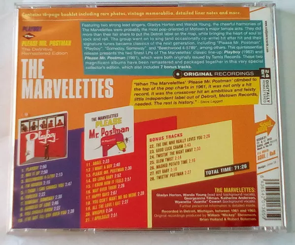 The Marvelettes: Playboy Plus Please Mr. Postman versione su CD in rimasterizzati edizione. Questa particolare edizione è stata pubblicata in Europa nella casa editrice Soul Jam Records in data 25. giugno 2013. Album comprende generi Funk / Soul e Rhythm & Blues.