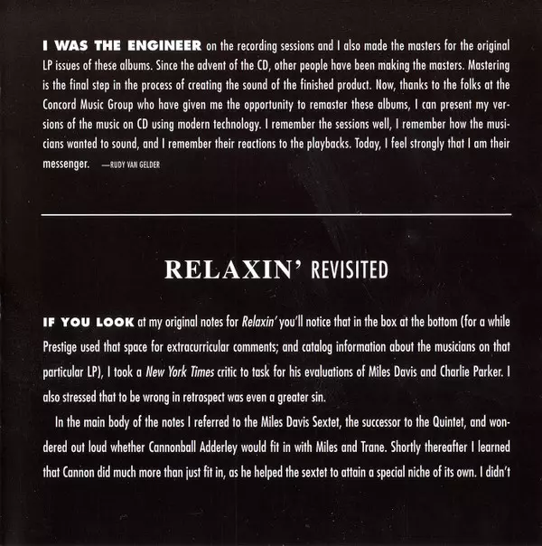 | Per saperne di più | 2006 Prestige Remaster CD Europe |