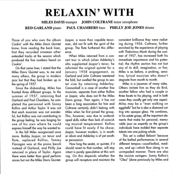 | Titolo | Relaxin' With The Miles Davis Quintet |