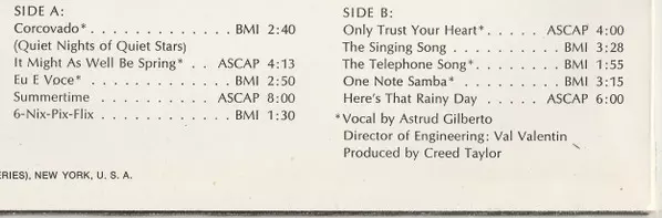 | Artista | Astrud Gilberto | The New Stan Getz Quartet |