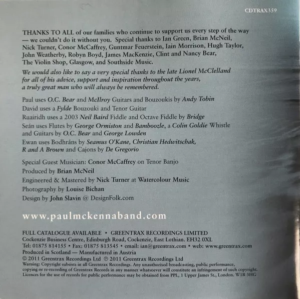 Backing Vocals Brian McNeill (2) | Bodhrán, Backing Vocals Ewan Baird | Bouzouki, Backing Vocals David McNee | Fiddle [Octave Fiddle], Fiddle Rua MacMillan | Guitar, Backing Vocals Sean Gray (3) | Vocals, Backing Vocals, Guitar Paul McKenna (9) | Written-By Paul McKenna (9)