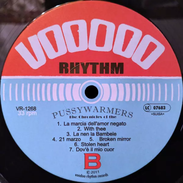 The Pussywarmers: The Chronicles Of The Pussywarmers versione su vinile LP in standard edizione. Questa particolare edizione è stata pubblicata in Svizzera nella casa editrice Voodoo Rhythm in data 29. aprile 2011. Album comprende generi Rock, Folk, World, & Country, Blues, Jazz, Experimental, Avant-garde, Gypsy Jazz e Cajun.
