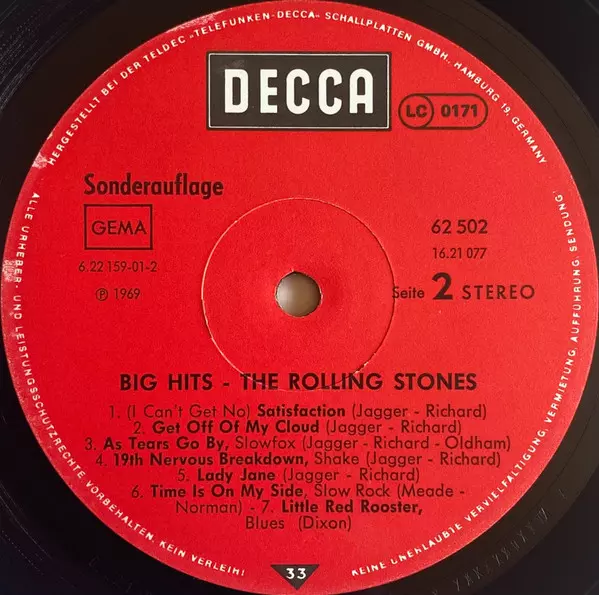 | Titolo | Big Hits (High Tide And Green Grass) |