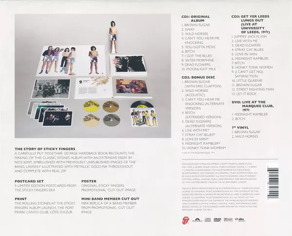 The Rolling Stones: Sticky Fingers NUM | DLX versione su 3CD/3DVD in numerati individualmente deluxe edizione. Questa particolare edizione è stata pubblicata in Europa nella casa editrice Rolling Stones Records in collaborazione con Polydor in data 5. giugno 2015.