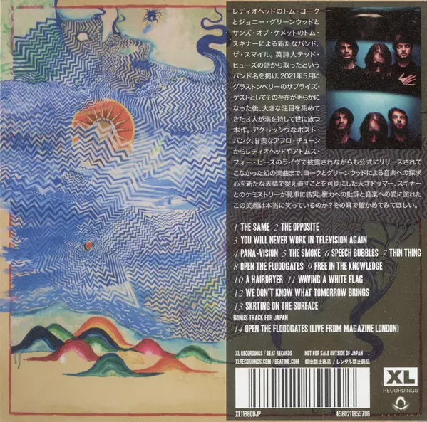"The Smile: A Light For Attracting Attention" is the debut studio album by The Smile, released in 2022. The band is a side project of Radiohead members Thom Yorke and Jonny Greenwood, along with drummer Tom Skinner from Sons of Kemet. The album showcases a collection of 13 tracks, including titles such as "The Same," "The Opposite," "You Will Never Work In Television Again," "Pana-Vision," "The Smoke," "Speech Bubbles," "Thin Thing," "Open The Floodgates," "Free In The Knowledge," "A Hairdryer," "Waving A White Flag," "We Don't Know What Tomorrow Brings," and "Skrting On The Surface." These tracks blend elements of alternative rock, electronic music, and jazz, reflecting the diverse influences and innovative approach of its members. The album has been well-received for its artistry and the chemistry between the musicians.