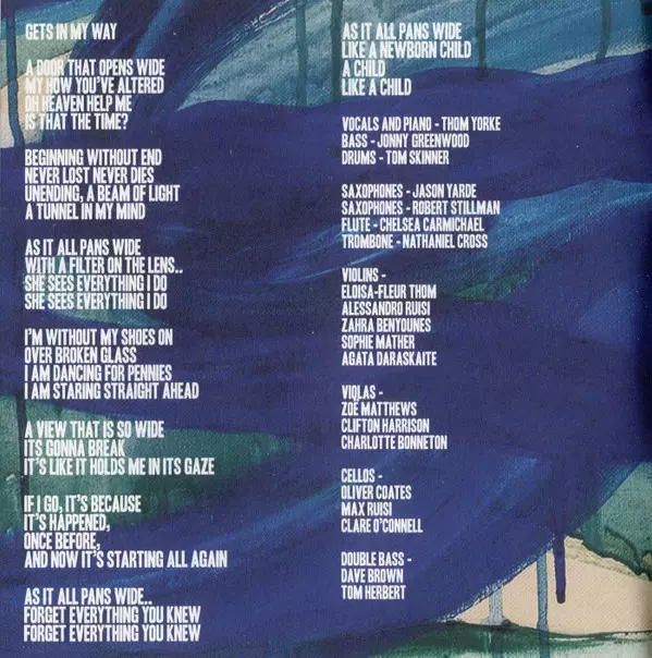 Bass Jonny Greenwood | Cello [Cellos] Clare O'Connell, Max Ruisi, Oliver Coates | Double Bass Dave Brown (37), Tom Herbert | Drums Tom Skinner | Piano Thom Yorke | Viola [Violas] Charlotte Bonneton, Clifton Harrison, Zoe Matthews | Violin [Violins] Agata Daraškaitė, Alessandro Ruisi, Eloisa-Fleur Thom, Sophie Mather, Zara Benyounes