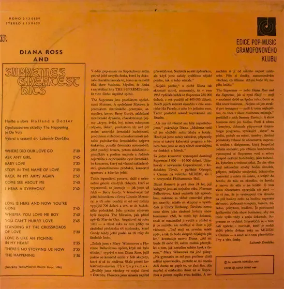 | Casa editrice | Supraphon | Gramofonový Klub | Tamla Motown |