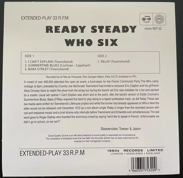| Titolo | Ready Steady Who Six: Live in Paris '72 |