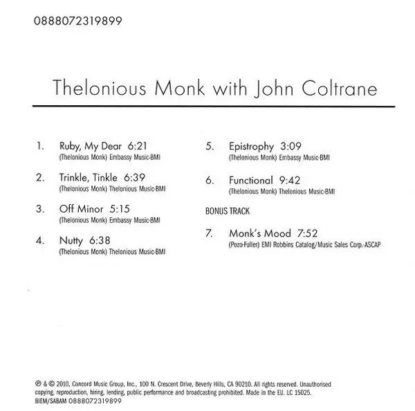 | Titolo | Thelonious Monk With John Coltrane |