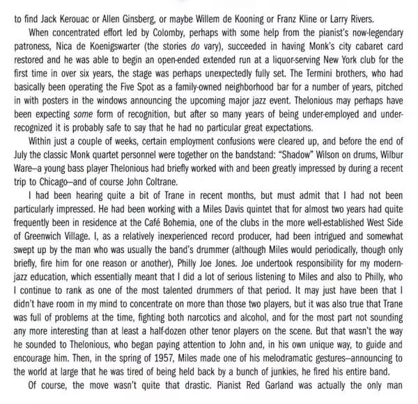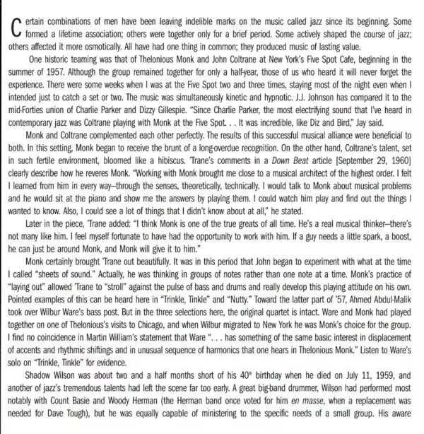 | Artista | John Coltrane | Thelonious Monk |