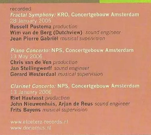 | Titolo | Clarinet Concerto, Piano Concerto & Fractal Symphony |