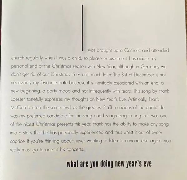 Bass Christian Von Kaphengst | Drums Flo Dauner | Electric Piano, Keyboards Henry Hey | Featuring, Vocals Frank McComb | Flugelhorn, Programmed By Till Brönner | Guitar Bruno Müller | Orchestra Deutsches Symphonie-Orchester Berlin | Percussion Roland Peil | Piano Frank Chastenier | Written-By Frank Loesser