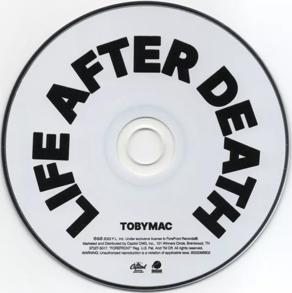 TobyMac: Life After Death versione su CD in standard edizione. Questa particolare edizione è stata pubblicata in Stati Uniti nella casa editrice ForeFront Records in collaborazione con Capitol Christian Music Group in data 19. agosto 2022. Album comprende generi Rock, Pop e Hip Hop.