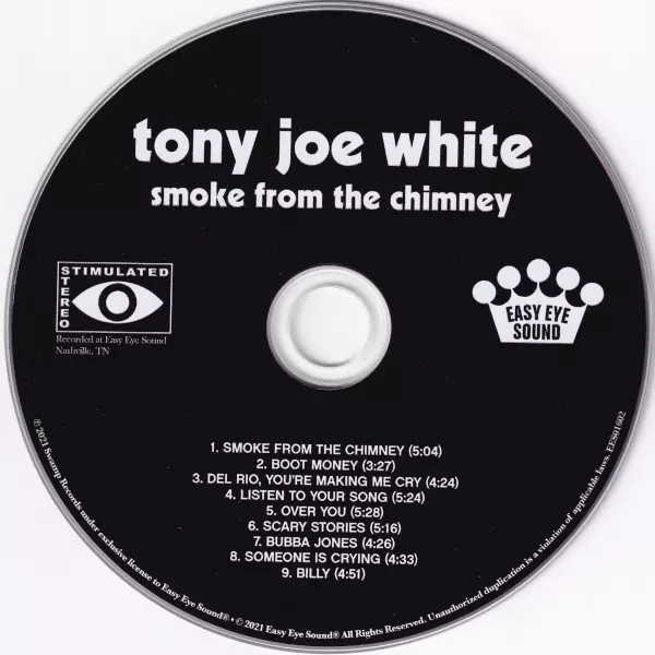 Tony Joe White: Smoke From The Chimney versione su CD in standard edizione. Questa particolare edizione è stata pubblicata in Europa nella casa editrice Easy Eye Sound in data 14. maggio 2021. Album comprende generi Rock, Folk, World, & Country, Blues e Louisiana Blues.