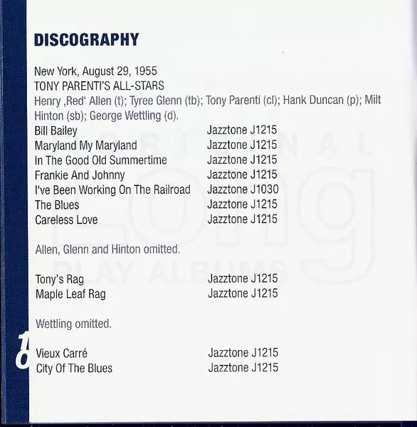 | Artista | Tony Parenti's All-Stars |