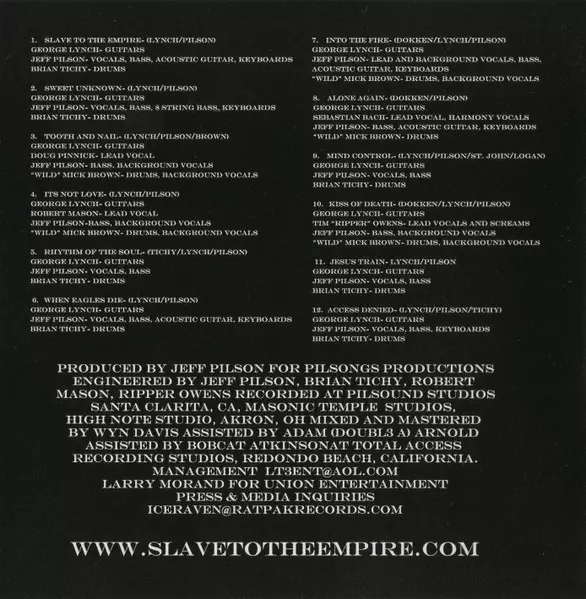 Tooth & Nail: Slave To The Empire versione su CD in standard edizione. Questa particolare edizione è stata pubblicata in Stati Uniti nella casa editrice Rat Pak Records anno 2013. Album comprende generi Rock e Heavy Metal.
