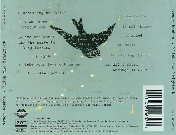 Tracy Bonham: Blink The Brightest versione su CD in standard edizione. Questa particolare edizione è stata pubblicata in Paesi Bassi nella casa editrice Zoë Records anno 2015. Album comprende generi Rock e Alternative rock. Slipcase.