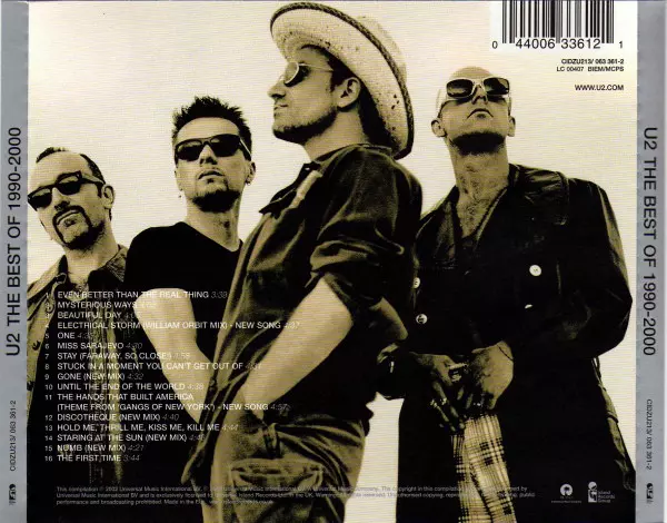 "U2: Best Of 1990 - 2000", the second installment of U2's "Best Of" albums, will cover the period from 1990 to 2000 and the 16 tracks on this volume are highlights from "Achtung Baby", "Zooropa", "Passengers: Original Soundtracks 1", "Pop" and "All That You Can't Leave Behind". Two brand new songs were recorded especially for this album: "Electrical Storm", which will also be released as a single, and "The Hands That Built America", which will appear on the soundtrack of Martin Scorsese's film "The Gangs Of New York". In addition, four songs - "Discothèque", "Gone", "Numb" and "Staring At The Sun" - have been reworked from the ground up by producer Mike Hedges.
