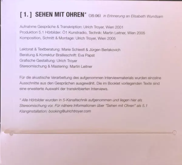 | Titolo | Sehen Mit Ohren |