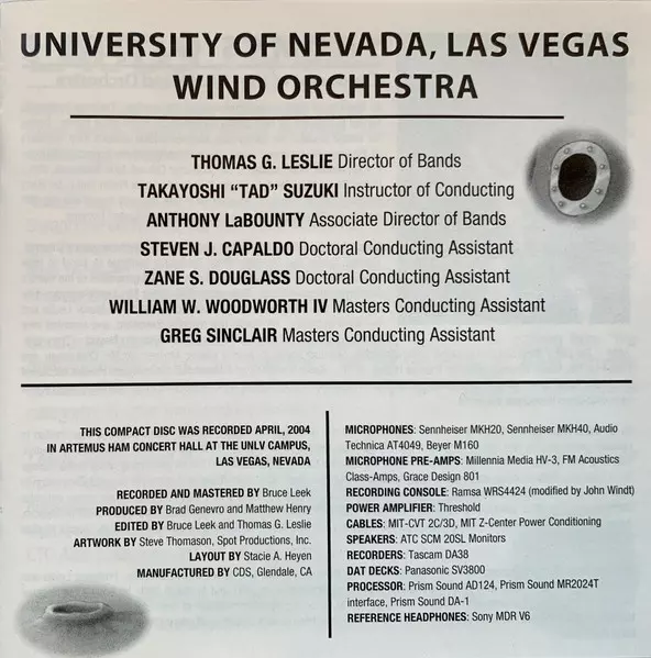 | Artista | UNLV Wind Orchestra | Thomas G. Leslie |