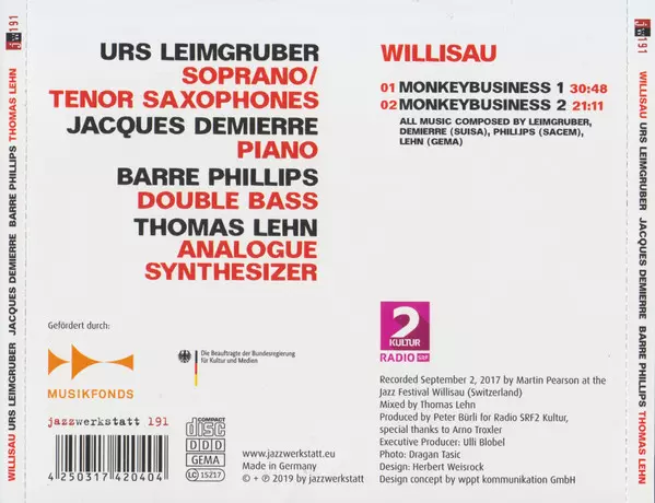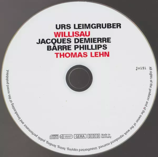 | Artista | Urs Leimgruber / Jacques Demierre / Barre Phillips | Thomas Lehn |