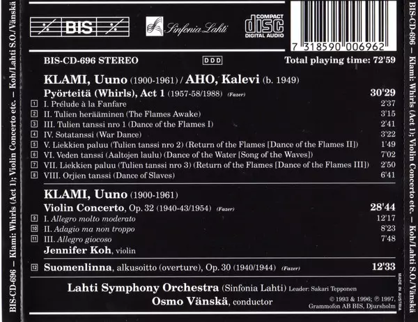 Artista | Osmo Vänskä | Jennifer Koh | Lahti Symphony Orchestra | Uuno Klami |