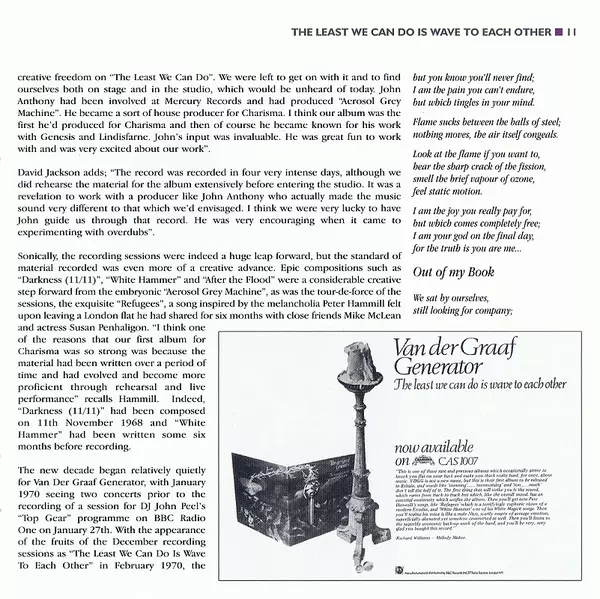 The album was recorded in four days in December 1969 and cemented VDGG's patented sound, with Refugees even making the Top 50 alongside favourites such as After The Flood and White Hammer. Today, it ranks along with In The Court Of The Crimson King Crimson as one of the best debuts of the year. The album included the beautiful, anthemic Refugees...