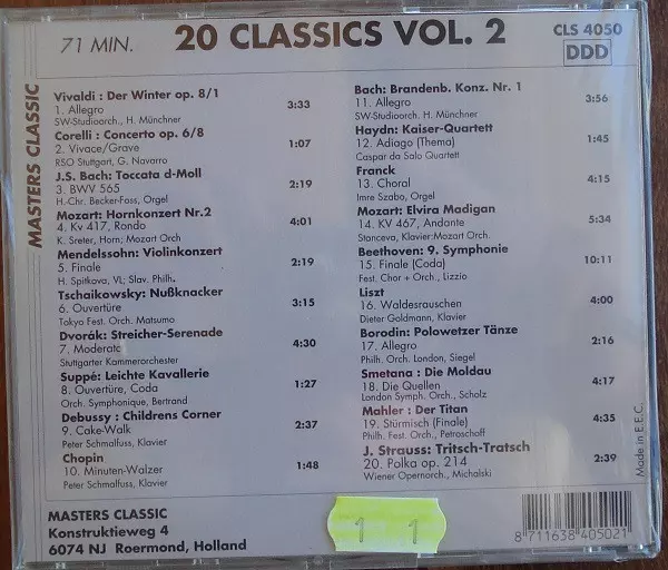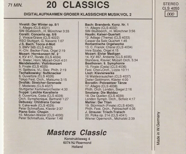 | Titolo | 20 Classics - Digitalaufnahmen Großer Klassischer Musik - Vol. 2 |