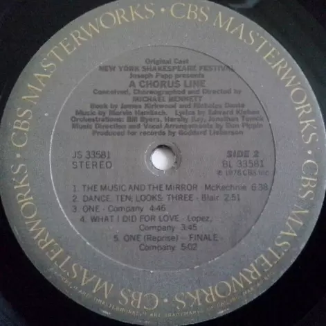 | B5 | "A Chorus Line" Original Broadway Cast: One - Finale (Reprise) | 5:02 min |