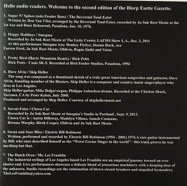 | Arranged By, Bass [Solo Fender Bass] The Reverend Toad Eater | Recorded By Ju Suk Reet Meate | Written-By Don Van Vliet | |||