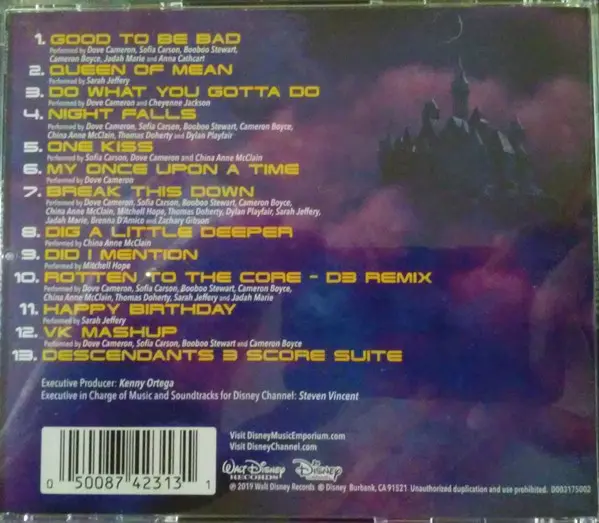 The soundtrack to Disney's long-awaited third Descendants movie! The American TV movie directed and choreographed by Kenny Ortega is the sequel to the blockbuster hits Descendants (2015) and Descendants 2 (2017). Descendants 3 continues the saga of good versus evil as the teenage daughters and sons of Disney's most famous villains - Mal, Evie, C...