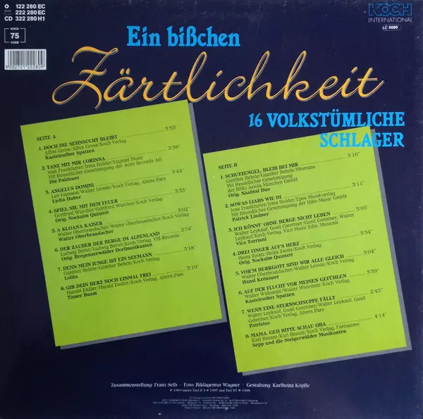 | Titolo | Ein Bißchen Zärtlichkeit 16 Volkstümliche Schlager |