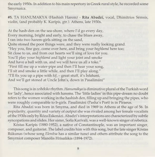 | 5 | Ρίτα Αμπατζή: Ta Hanumakya = Hashish Harem | 3:10 min | |